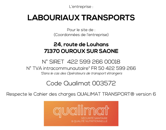 La Direction des transports LABOURIAUX, la Direction du Groupement France BENNE, l’ensemble de leurs collaborateurs & collaboratrices sont heureux de vous annoncer que notre entreprise a obtenu la certification « QUALIMAT »